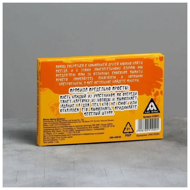 Купить игра для компании "фанты буханты" 20 карт от 100 руб. с доставкой до пункта выдачи в Бакале. Интернет магазин ДекаМаркет. Оплата при получении.