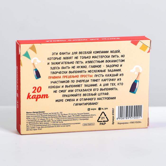 Купить игра для компании "фанты звезда бокала" 20 карт от 120 руб. с доставкой до пункта выдачи в Бакале. Интернет магазин ДекаМаркет. Оплата при получении.